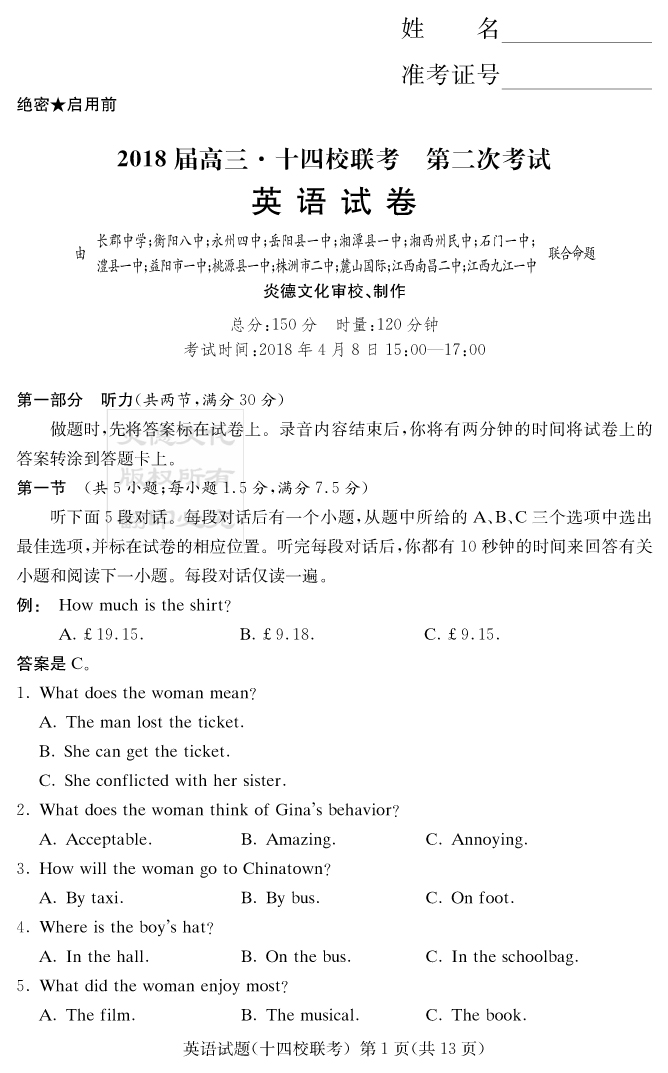 | 資源類別: | 名校月考 | |
