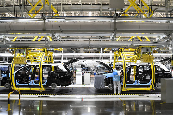 這是在位于重慶市兩江新區(qū)的賽力斯汽車超級工廠智能化生產作業(yè)現(xiàn)場(2024年6月7日攝)。(新華社記者 王全超/攝)