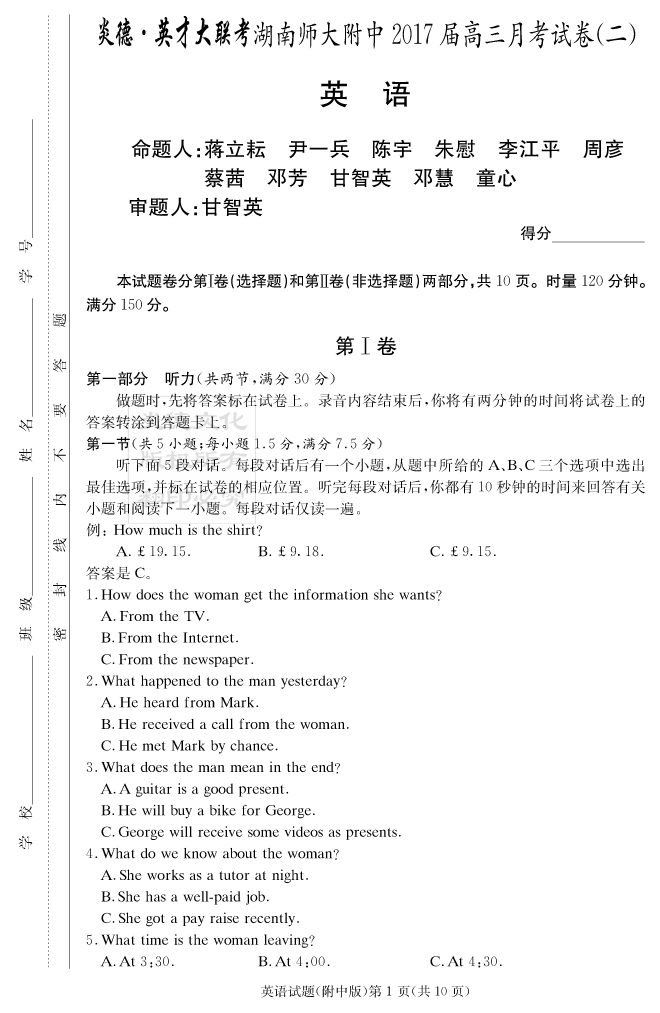 下一篇:【語文】炎德英才大聯(lián)考2017師大附中高三2次月考