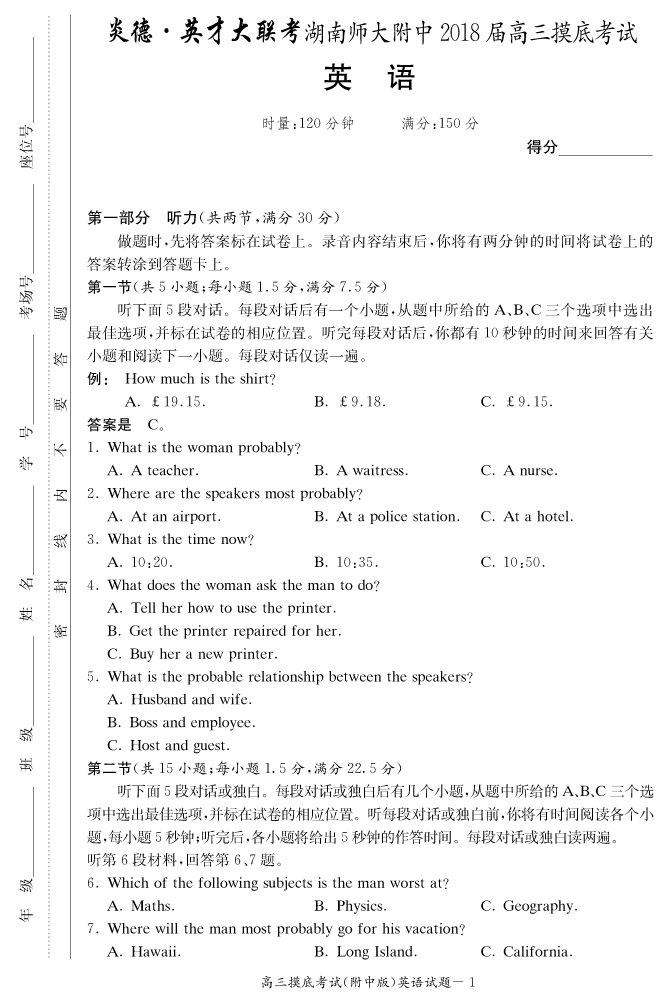 下一篇:【語文】炎德英才大聯(lián)考2018師大附中高三入學摸底考試