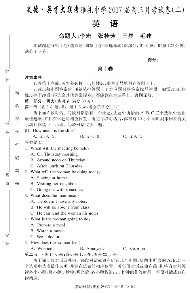 | 資源類別: | 名校月考 | |
