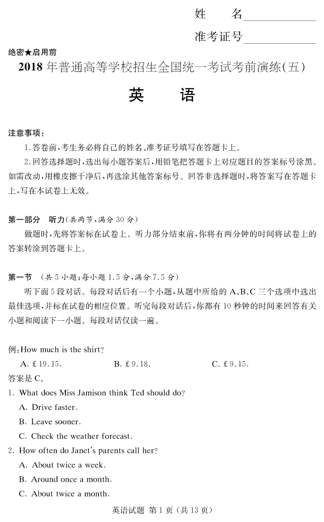下一篇:【語文】2018年普通高等學校招生全國統(tǒng)一考試考前演練(五)