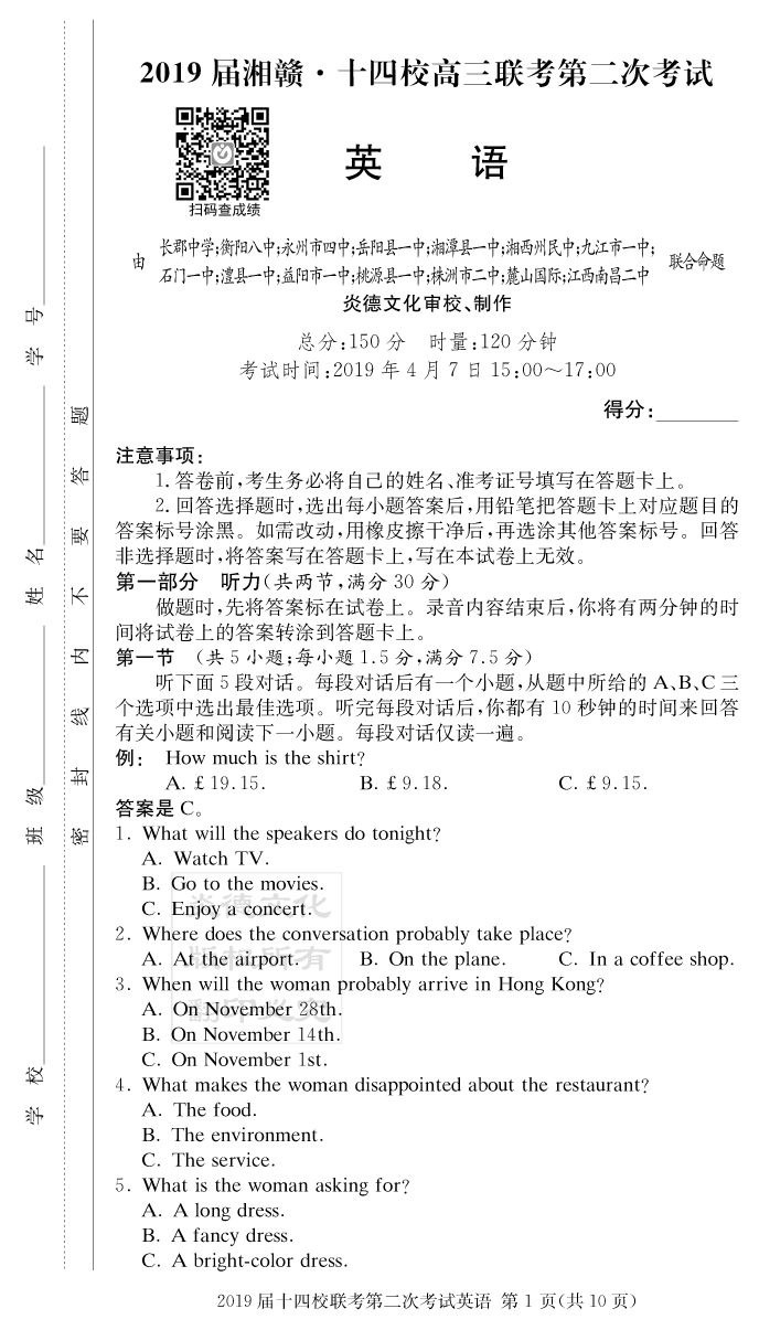 下一篇:【語文】炎德英才大聯(lián)考2019長(zhǎng)郡中學(xué)高三8次月考(十四校聯(lián)考二)
