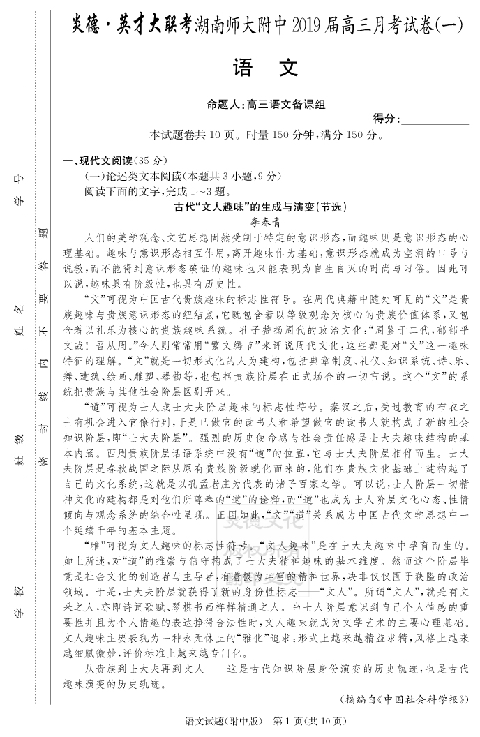 | 資源類別: | 名校月考 | |