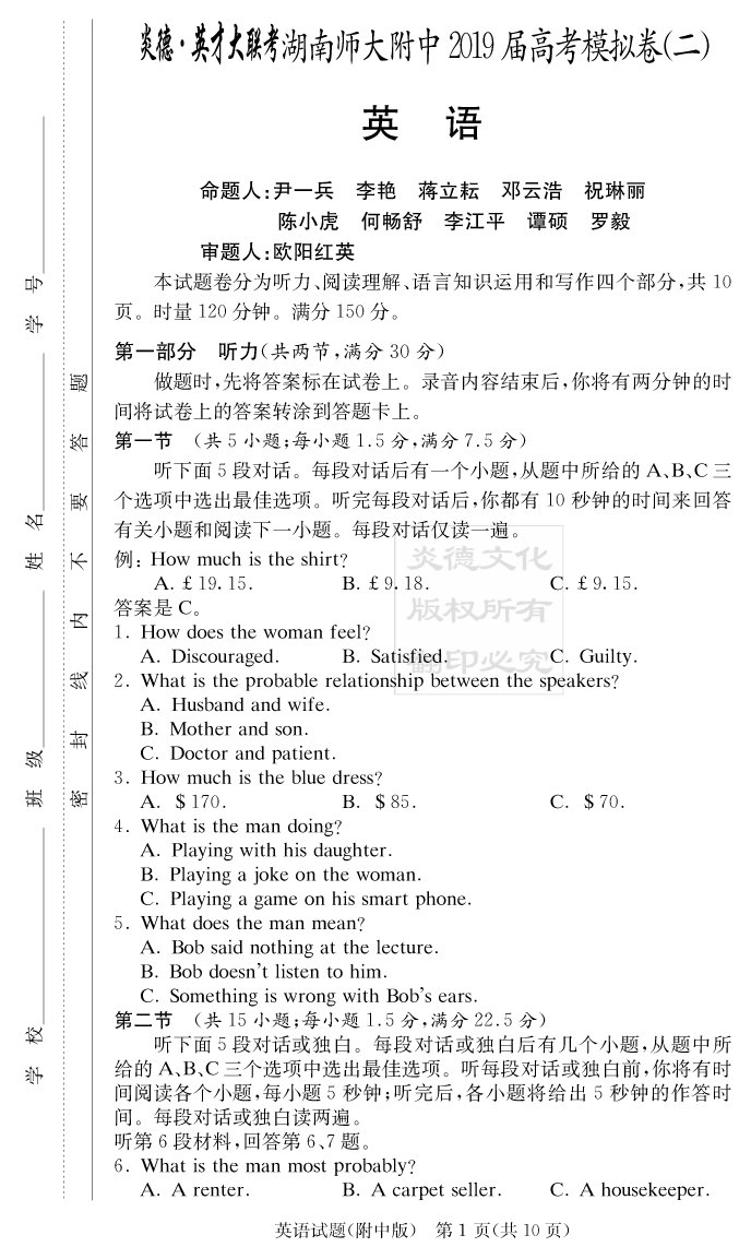 | 資源類別: | 名校月考 | |