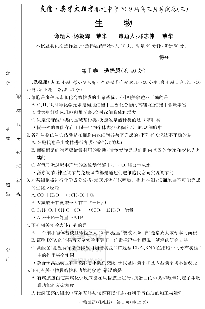 | 資源類(lèi)別: | 名校月考 | |