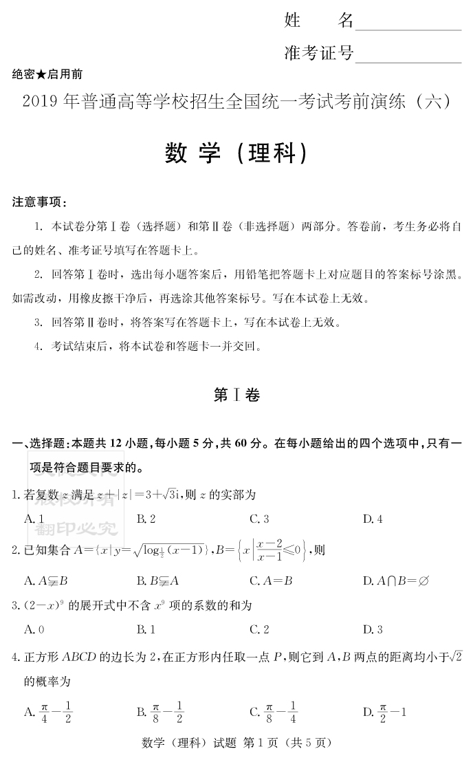 下一篇:【理綜】2019年普通高等學校招生全國統(tǒng)一考試考前演練(六)