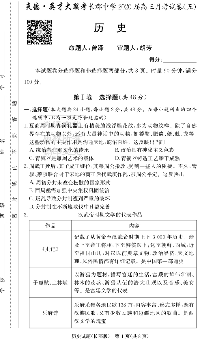 2025名師導學·名校名卷經典試題匯編·歷史