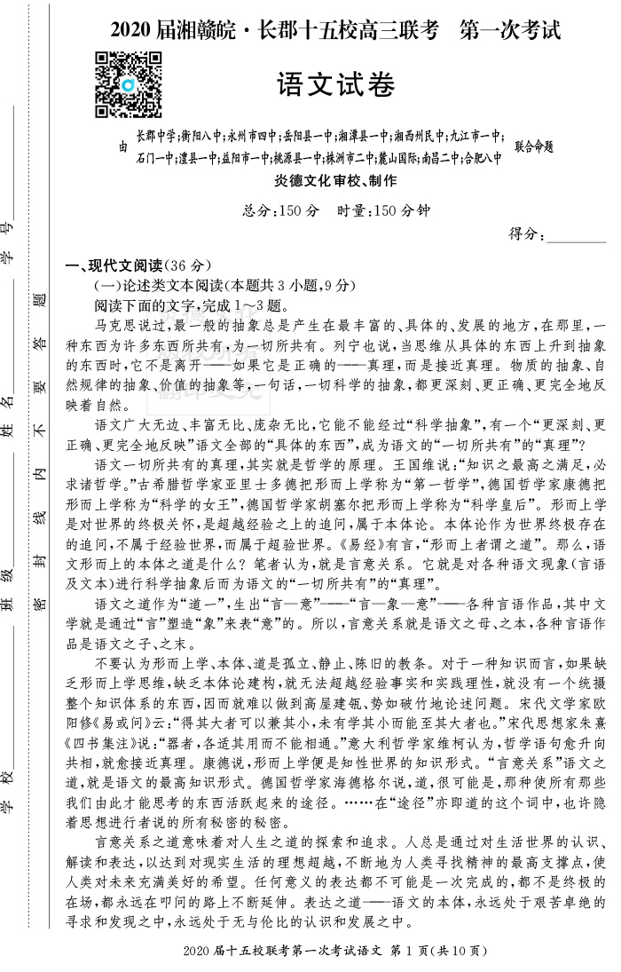 上一篇:【英語(yǔ)】炎德英才大聯(lián)考2020屆長(zhǎng)郡中學(xué)高三7次月考(十五校聯(lián)考一)