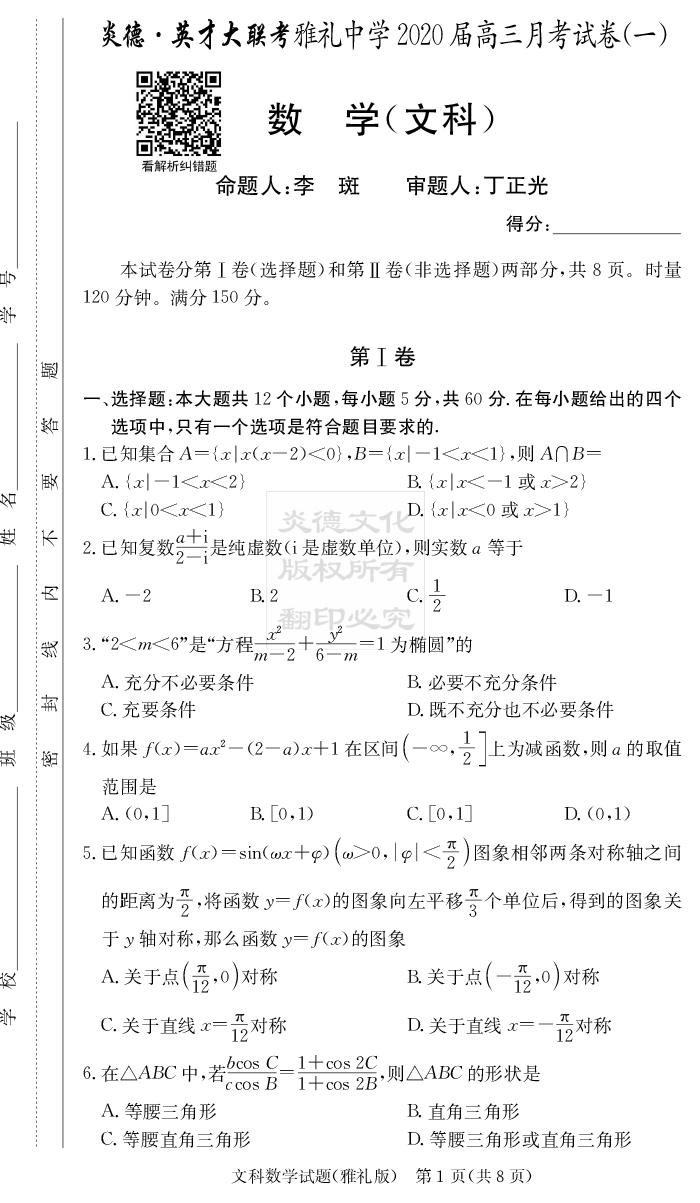 下一篇:【物理】炎德英才大聯(lián)考2020屆雅禮中學高三1次月考