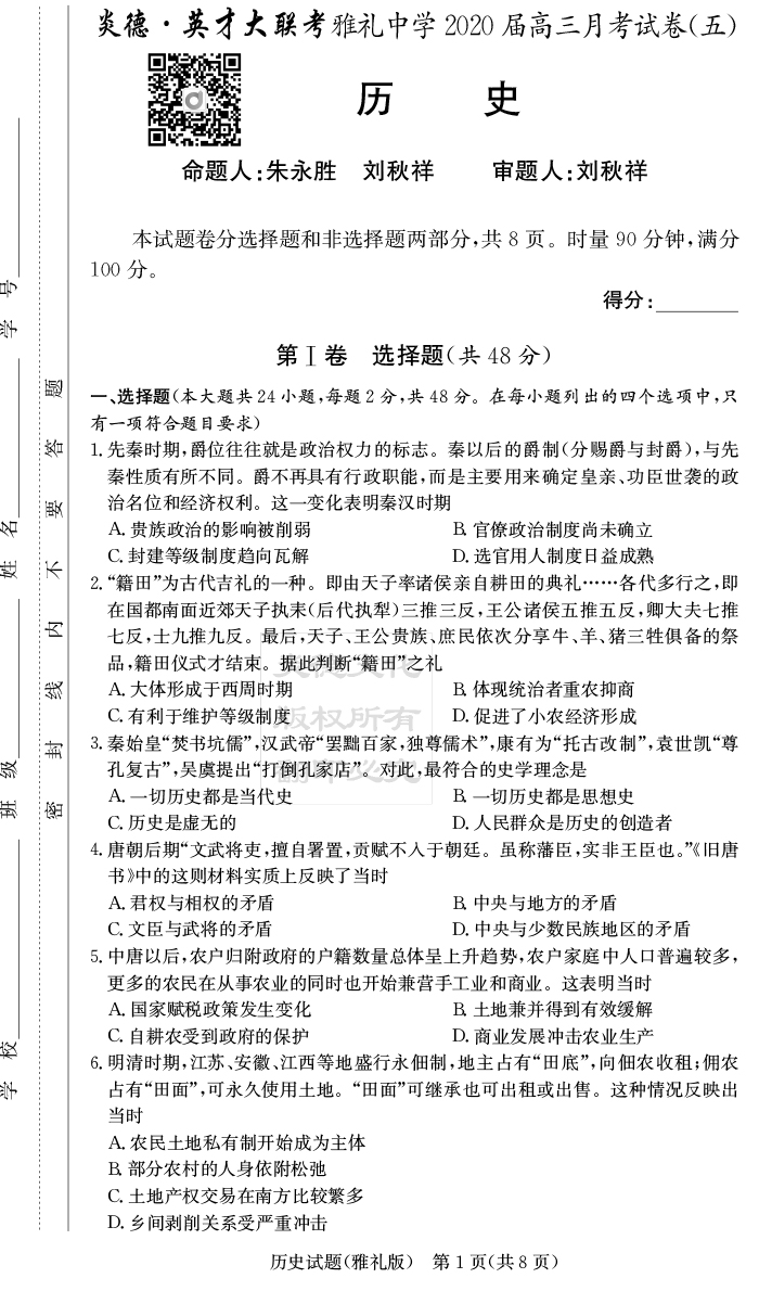 2025名師導學·名校名卷經(jīng)典試題匯編·歷史