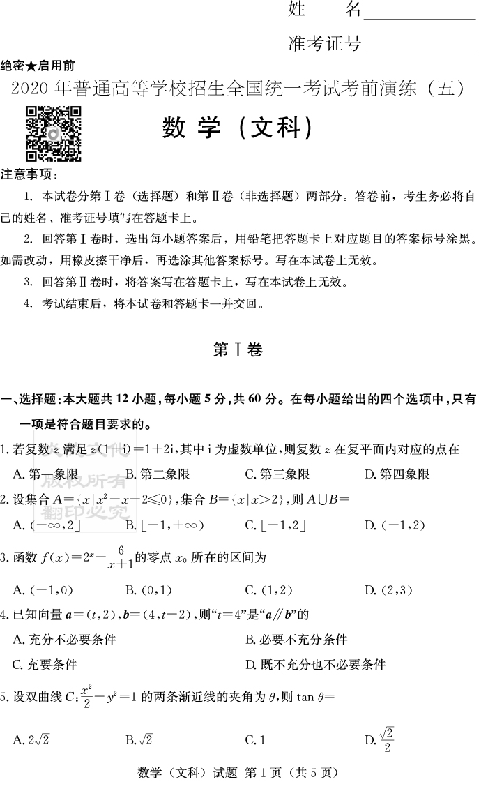 下一篇:【文綜】2020年普通高等學校招生全國統(tǒng)一考試考前演練(五)