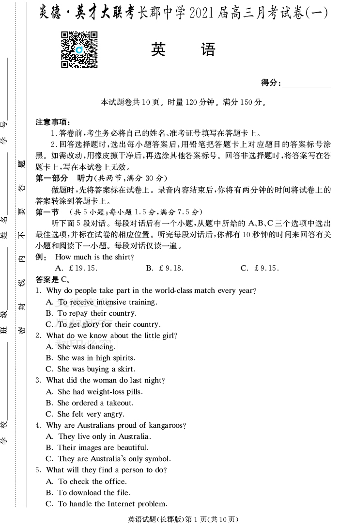 | 資源類別: | 名校月考 | |