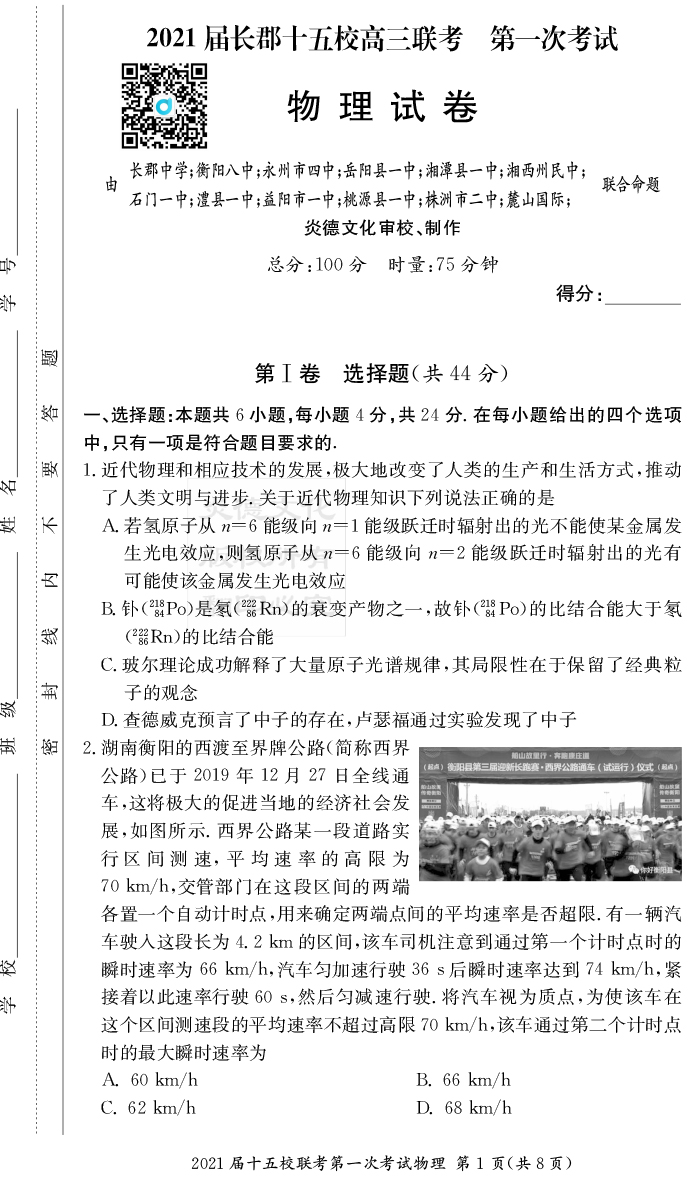 下一篇:【英語(yǔ)】炎德英才大聯(lián)考2021屆長(zhǎng)郡中學(xué)高三7次月考(十五校聯(lián)考一)