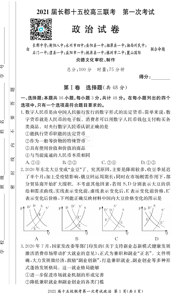 上一篇:【語文】炎德英才大聯(lián)考2021屆長(zhǎng)郡中學(xué)高三7次月考(十五校聯(lián)考一)