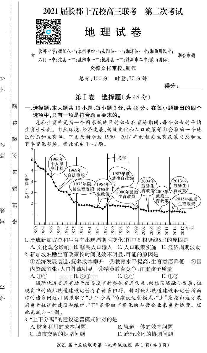 上一篇:【政治】炎德英才大聯(lián)考2021屆長(zhǎng)郡中學(xué)高三7次月考(十五校聯(lián)考一)