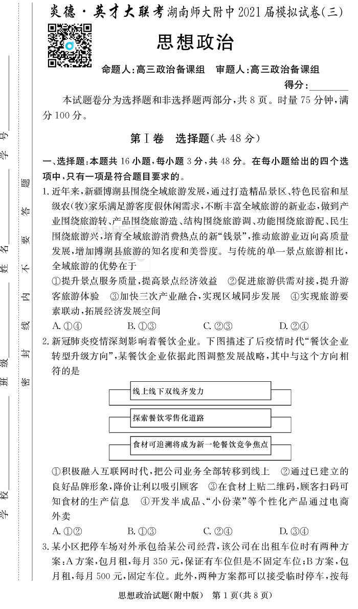 上一篇:【語(yǔ)文】炎德英才大聯(lián)考2021屆湖南師大附中高三10次月考(模擬三)