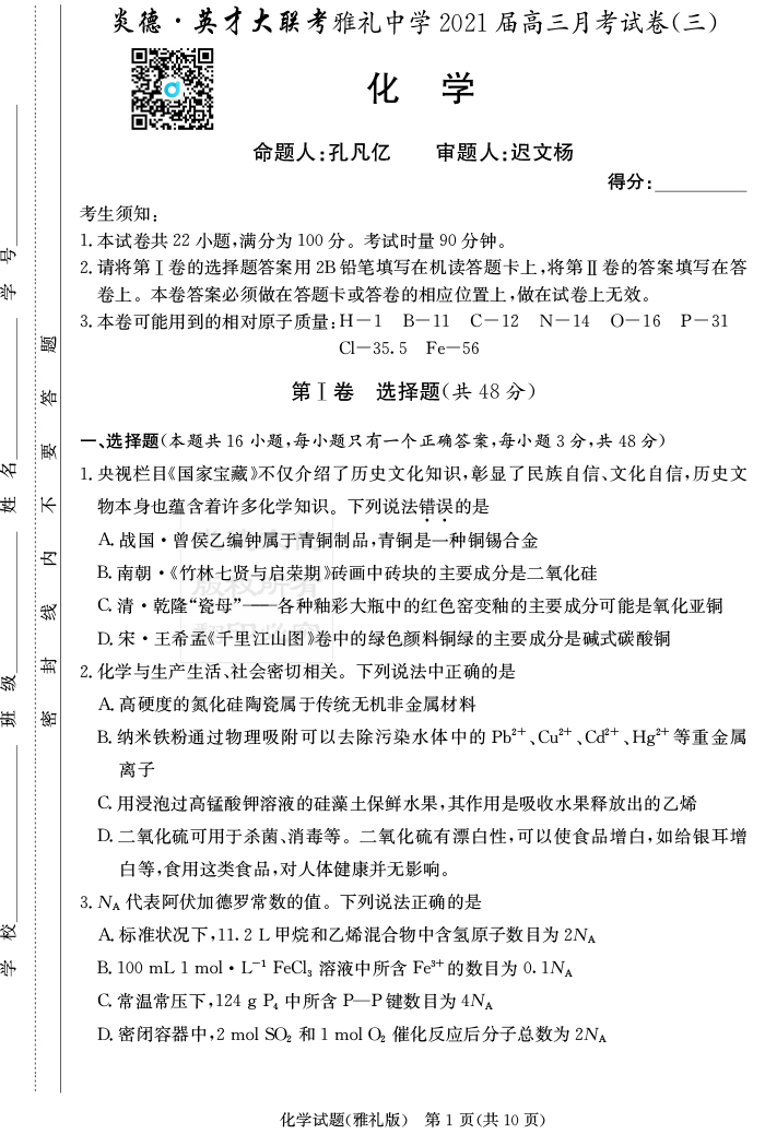 2025名師導學·名校名卷經(jīng)典試題匯編·化學