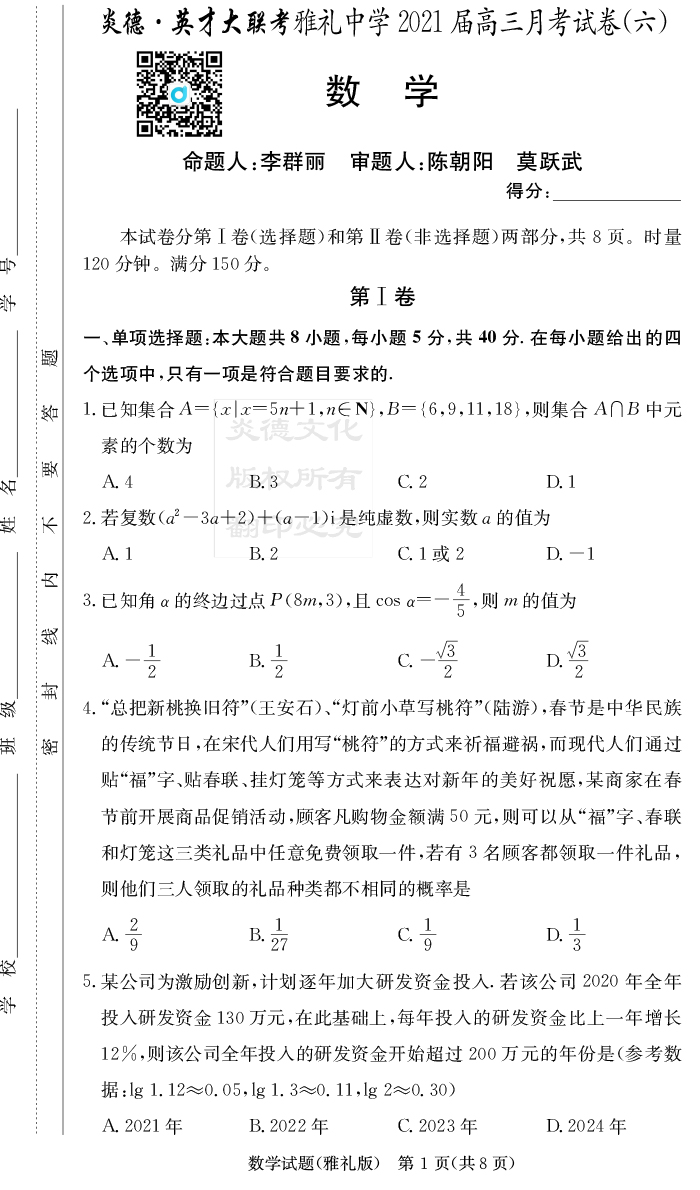 上一篇:【生物】炎德英才大聯考2021屆雅禮中學高三6次月考