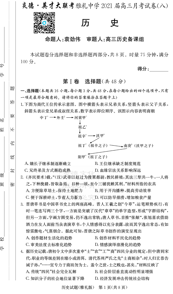 2025名師導學·名校名卷經(jīng)典試題匯編·歷史