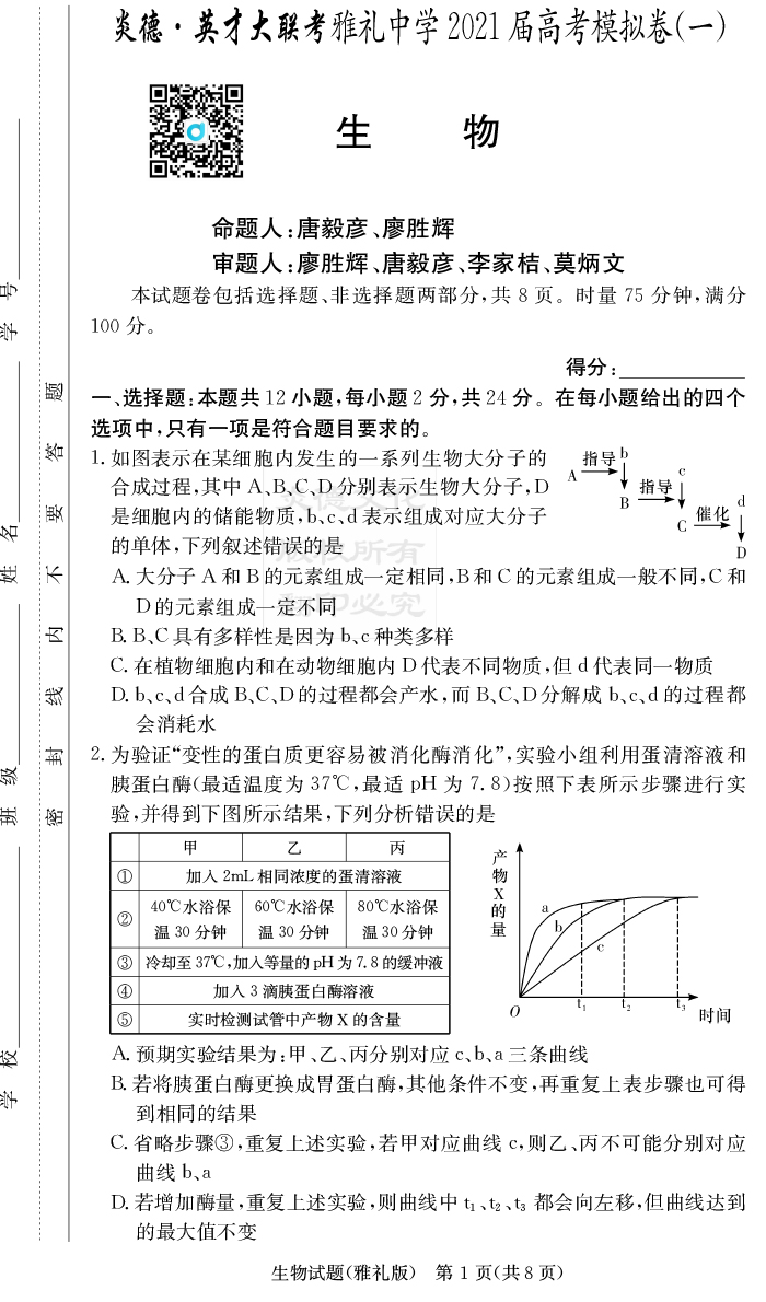 2025名師導學·名校名卷經(jīng)典試題匯編·生物