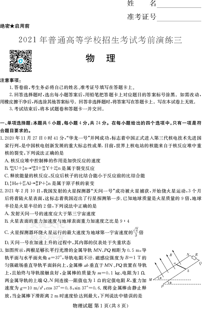 上一篇:【數(shù)學(xué)】2021年普通高等學(xué)校招生全國(guó)統(tǒng)一考試考前演練(三)