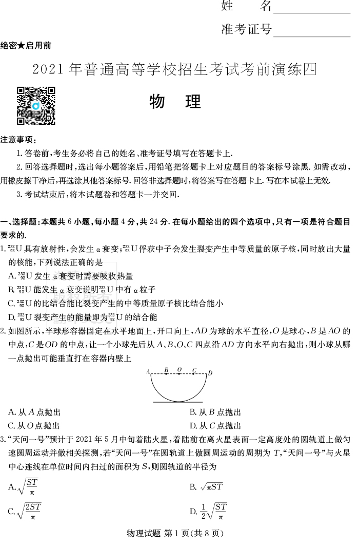 上一篇:【數(shù)學(xué)】2021年普通高等學(xué)校招生全國(guó)統(tǒng)一考試考前演練(四)