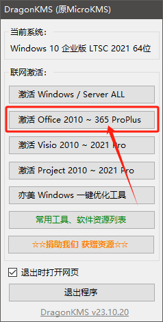 記得關(guān)閉殺毒軟件,啟動激活軟件。點擊激活 Microsoft Office 運(yùn)行激活程序