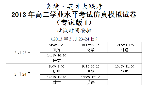 2013年高二學(xué)業(yè)水平考試仿真模擬試卷(專家版1)