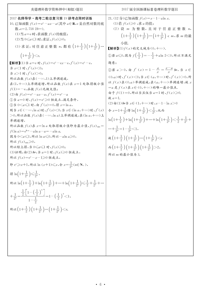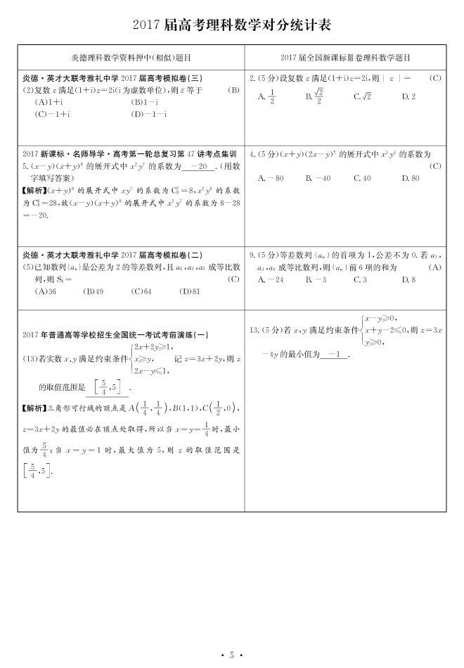2017高考全國卷Ⅲ對(duì)分表-理數(shù)