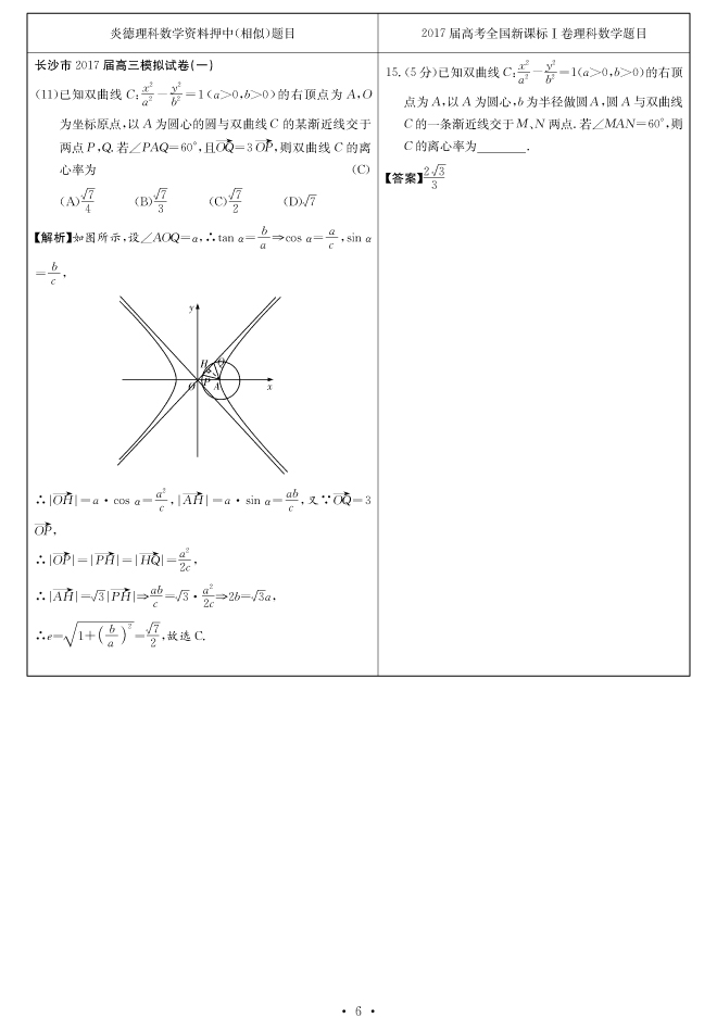 2017高考全國新課標(biāo)卷Ⅰ對(duì)分表-理數(shù)