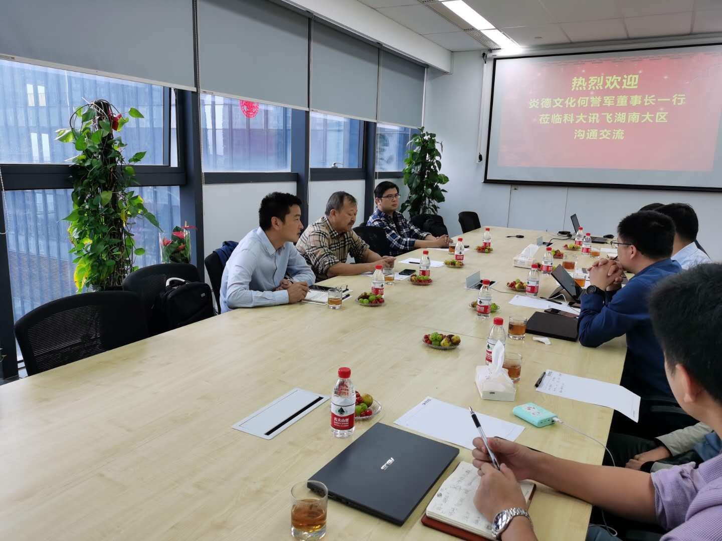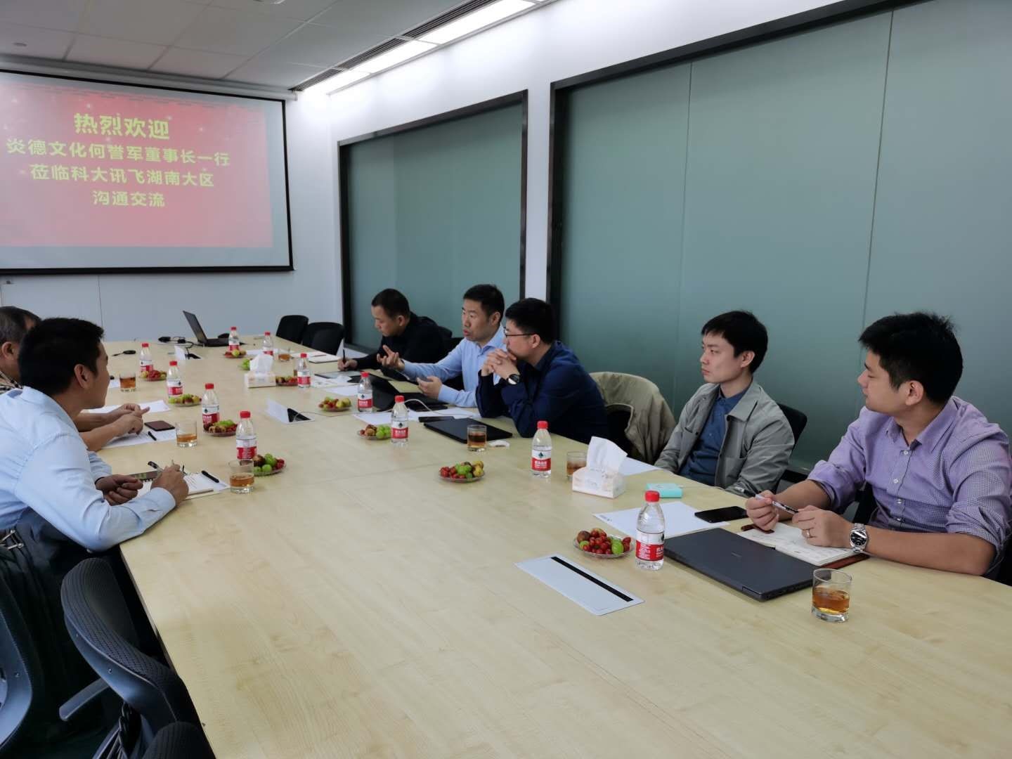 炎德文化何譽軍先生來到科大訊飛湖南分公司對雙方戰(zhàn)略合作一年來的工作和未來合作進行了深入交流