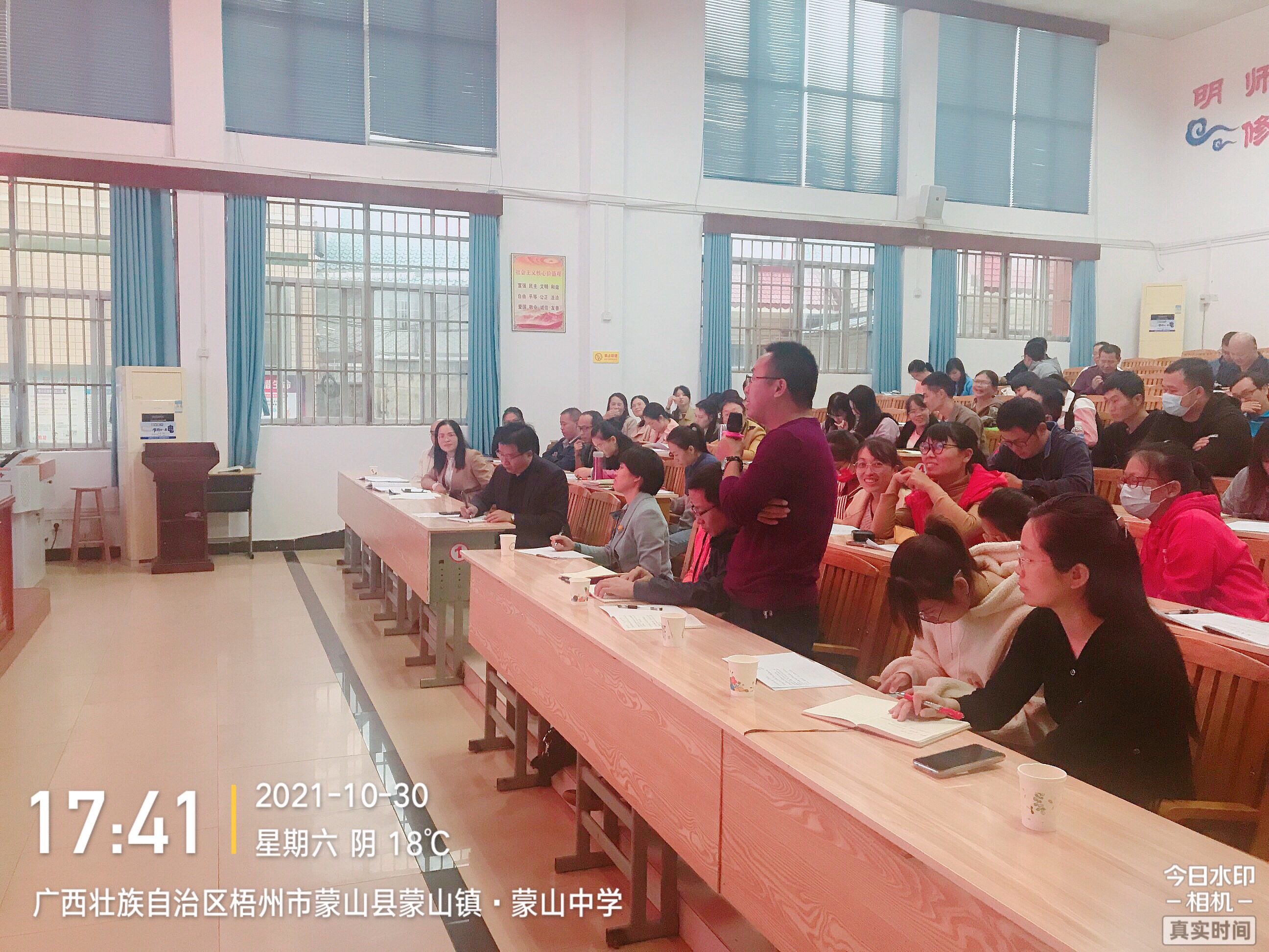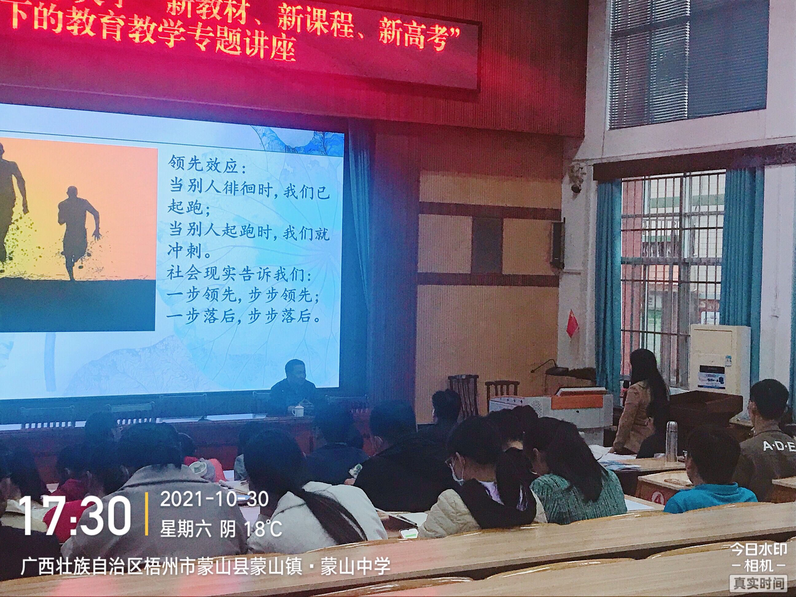 蒙山中學(xué)校長馮兆民、昭平中學(xué)副校長盧春英、教務(wù)主任林家昌全程參加講座,并認真記錄。
