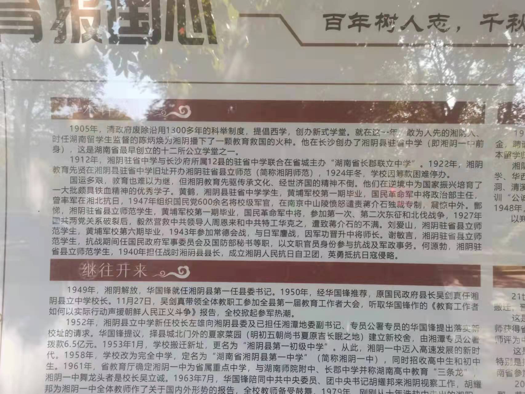 湘陰一中張校長陪同何總參觀校園