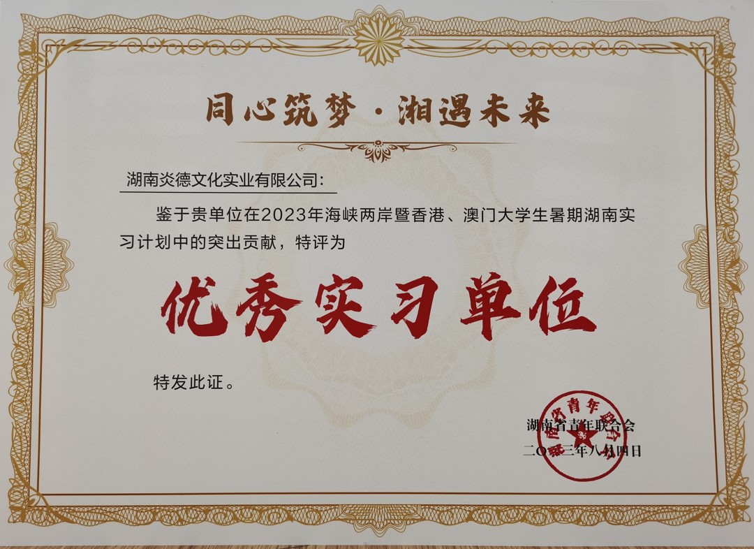 湖南炎德文化實業(yè)有限公司獲評2023年港澳臺大學生暑期湖南實習計劃“優(yōu)秀實習單位”