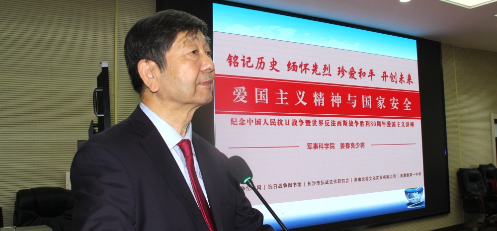 為紀(jì)念中國人民抗日戰(zhàn)爭(zhēng)暨世界反法西斯戰(zhàn)爭(zhēng)勝利80周年,弘揚(yáng)偉大抗戰(zhàn)精神,深化青少年愛國主義教育,湖南炎德文化實(shí)業(yè)有限公司、抗日戰(zhàn)爭(zhēng)紀(jì)念網(wǎng)、抗日戰(zhàn)爭(zhēng)圖書館、長(zhǎng)沙市抗戰(zhàn)文化研究會(huì)決定聯(lián)合主辦“銘記歷史 緬懷先烈 珍愛和平 開創(chuàng)未來”愛國主義教育講座,邀請(qǐng)中國人民解放軍軍事科學(xué)研究院研究員姜春良少將主講《愛國主義和國家安全》。