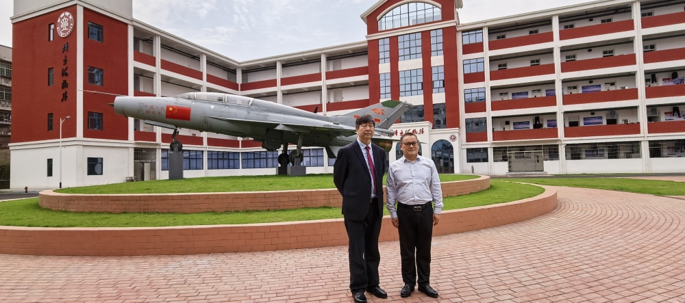 講座結(jié)束后,湘潭縣第一中學(xué)黨委書記齊學(xué)軍、黨委副書記、校長(zhǎng)唐樂軍、肖榮、郭良玉等熱情接待了姜春良將軍一行,陪同大家參觀了校園和海航樓。湘潭縣第一中學(xué)創(chuàng)辦于1946年,校園占地16.23萬平方米,建筑面積12.69萬平方米。學(xué)校秉承“剛勁、務(wù)實(shí)、敢為人先”的湖湘精神,銳意進(jìn)取,積淀了深厚的辦學(xué)底蘊(yùn);擁有湘潭大學(xué)、湖南科技大學(xué)、湖南工程學(xué)院等全國重點(diǎn)高校豐富的教學(xué)科研資源。學(xué)校取得了豐碩的辦學(xué)成果:學(xué)校是湖南省示范性普通高級(jí)中學(xué)、湖南省海軍青少年航空學(xué)校、全國文明校園、全國五四紅旗團(tuán)委、全國青少年校園足球特色學(xué)校、全國青少年校園籃球特色學(xué)校、全國國防教育特色學(xué)校、中國百強(qiáng)中學(xué)、湖南省首屆魅力校園,也是全省同時(shí)榮膺清華、北大直薦學(xué)生資質(zhì)的六所高級(jí)中學(xué)之一,二十多年來持續(xù)領(lǐng)跑湘潭教育。
