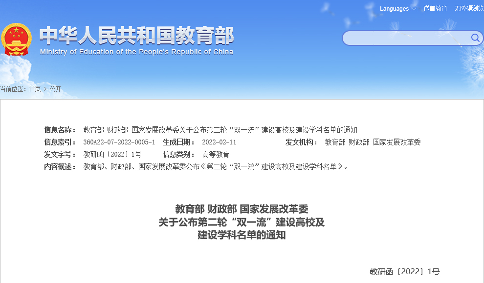 第二輪“雙一流”建設(shè)高校及建設(shè)學科名單
