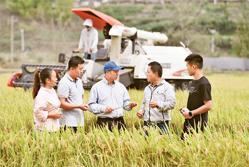 教育部黨組通過政治巡視推動直屬高校黨委扛牢政治責(zé)任、強化使命擔(dān)當(dāng)。圖為2021年10月8日,南京農(nóng)業(yè)大學(xué)師生在貴州省黔東南苗族侗族自治州麻江縣種植示范基地。該基地是在南京農(nóng)業(yè)大學(xué)幫助下建成的,培育出優(yōu)質(zhì)稻種“寧香粳9號”。(教育部供圖)
