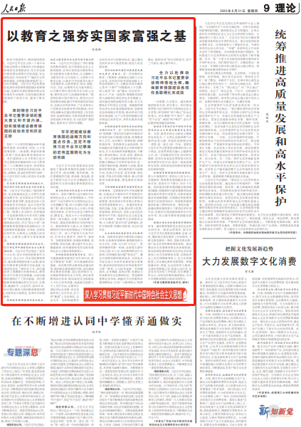 習(xí)近平總書記的重要講話全面闡述了建設(shè)教育強國的戰(zhàn)略方向和重點任務(wù),指向清晰、要求明確。我們要增強責(zé)任感、使命感、緊迫感,堅定不移把習(xí)近平總書記擘畫的宏偉藍(lán)圖轉(zhuǎn)化為加快建設(shè)教育強國的生動實踐。
