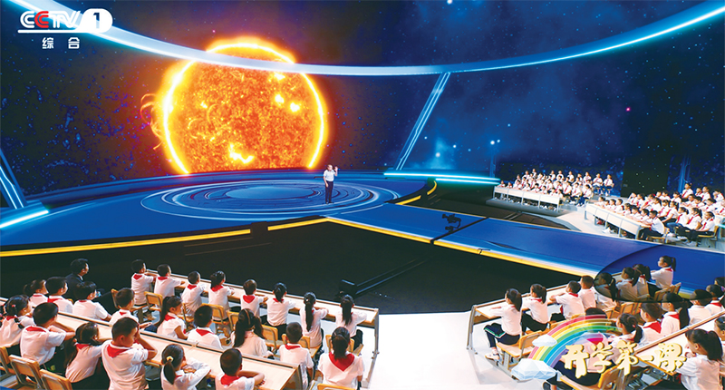 2023年《開學(xué)第一課》以“強(qiáng)國(guó)復(fù)興有我”為主題,從傳統(tǒng)文化、文明探源、生態(tài)文明、鄉(xiāng)村振興、國(guó)防教育、科技創(chuàng)新等多個(gè)方面,全景展示中國(guó)式現(xiàn)代化的萬(wàn)千氣象。圖為中國(guó)科學(xué)院高能物理研究所研究員、“拉索”(LHAASO)首席科學(xué)家曹臻在向同學(xué)們介紹世界上海拔最高、規(guī)模最大的宇宙射線觀測(cè)裝置“拉索”的前世今生。(教育部供圖)