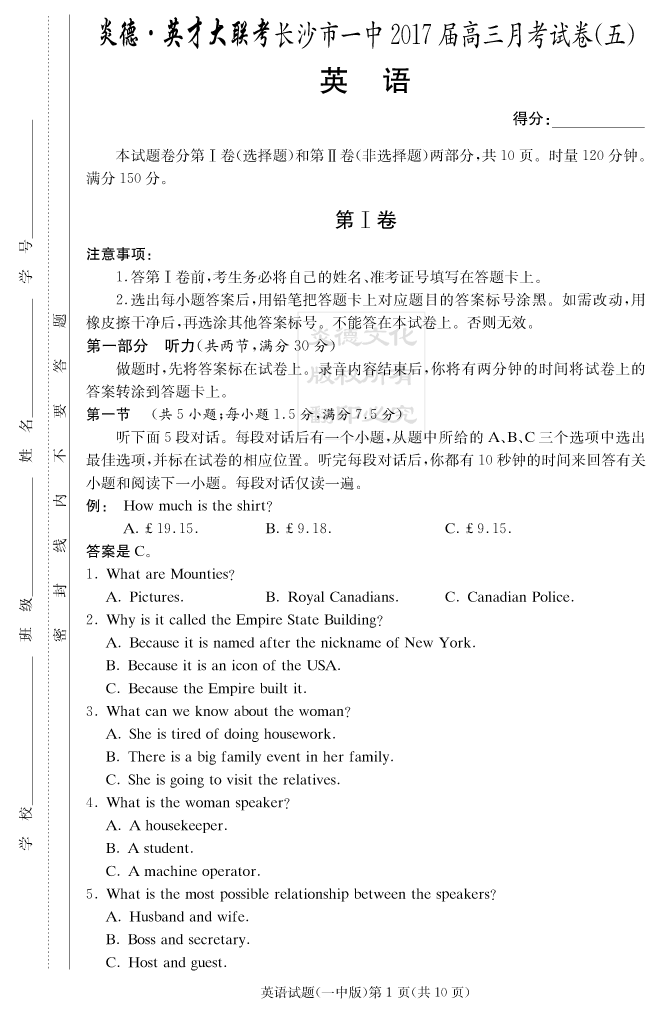 下一篇:【語文】炎德英才大聯(lián)考2017長沙一中高三5次月考