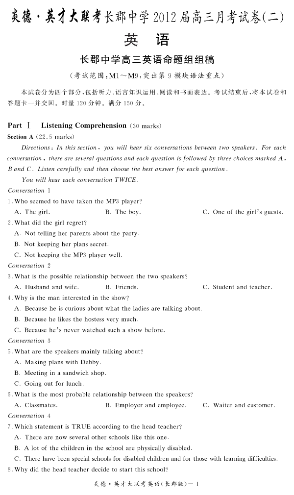 | 資源類別: | 名校月考 | |